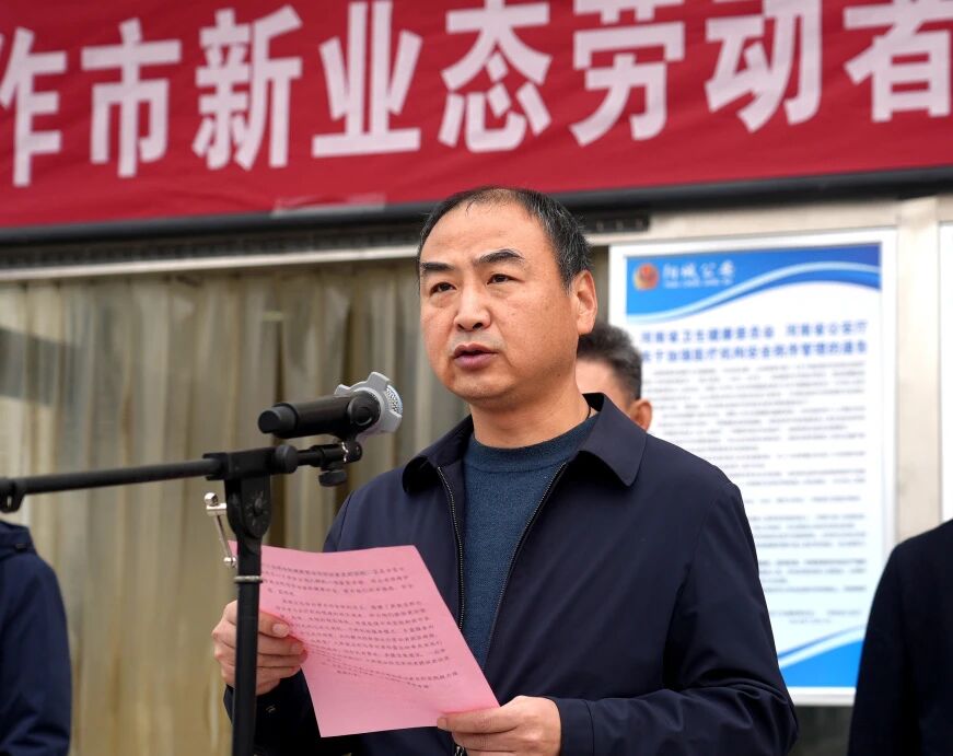 马好斌在讲话中表示,中央医院作为一家有着深厚历史底蕴和优良文化传承的医院,多年来始终以守护一方百姓安康为己任,在健康保障与医疗服务上交出了一份亮眼的答卷。为切实服务新就业形态劳动者,中央医院结合各院区诊疗特色量身出台了不同优惠政策,力求以最贴合需求的举措,为新就业形态劳动者提供优质、高效的健康咨询与医疗保障服务。我院将以此次揭牌仪式为契机,不断丰富服务内容、优化服务流程、提升服务质量,全心全意为大家的身心健康保驾护航,为五彩中央医院高质量发展和健康焦作建设作出新的贡献。